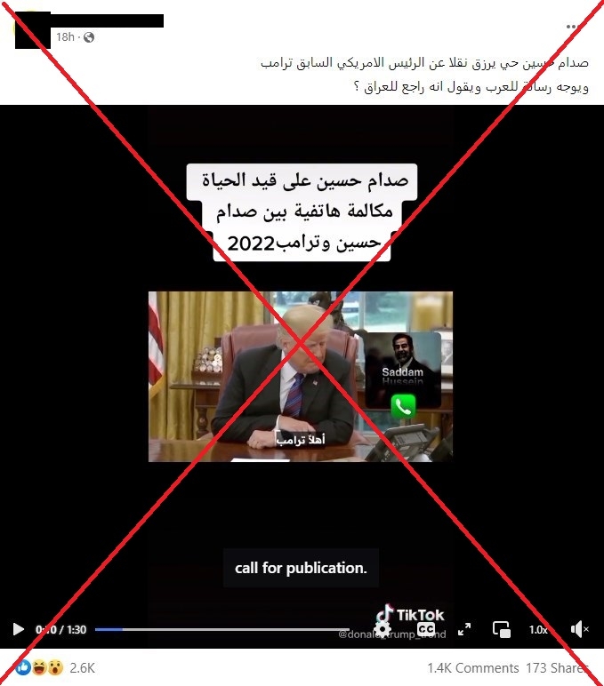 ونُشر هذا الفيديو بعنوان “صدام حسين على قيد الحياة، مكالمة هاتفية بين صدام حسين وترامب في 2022”.