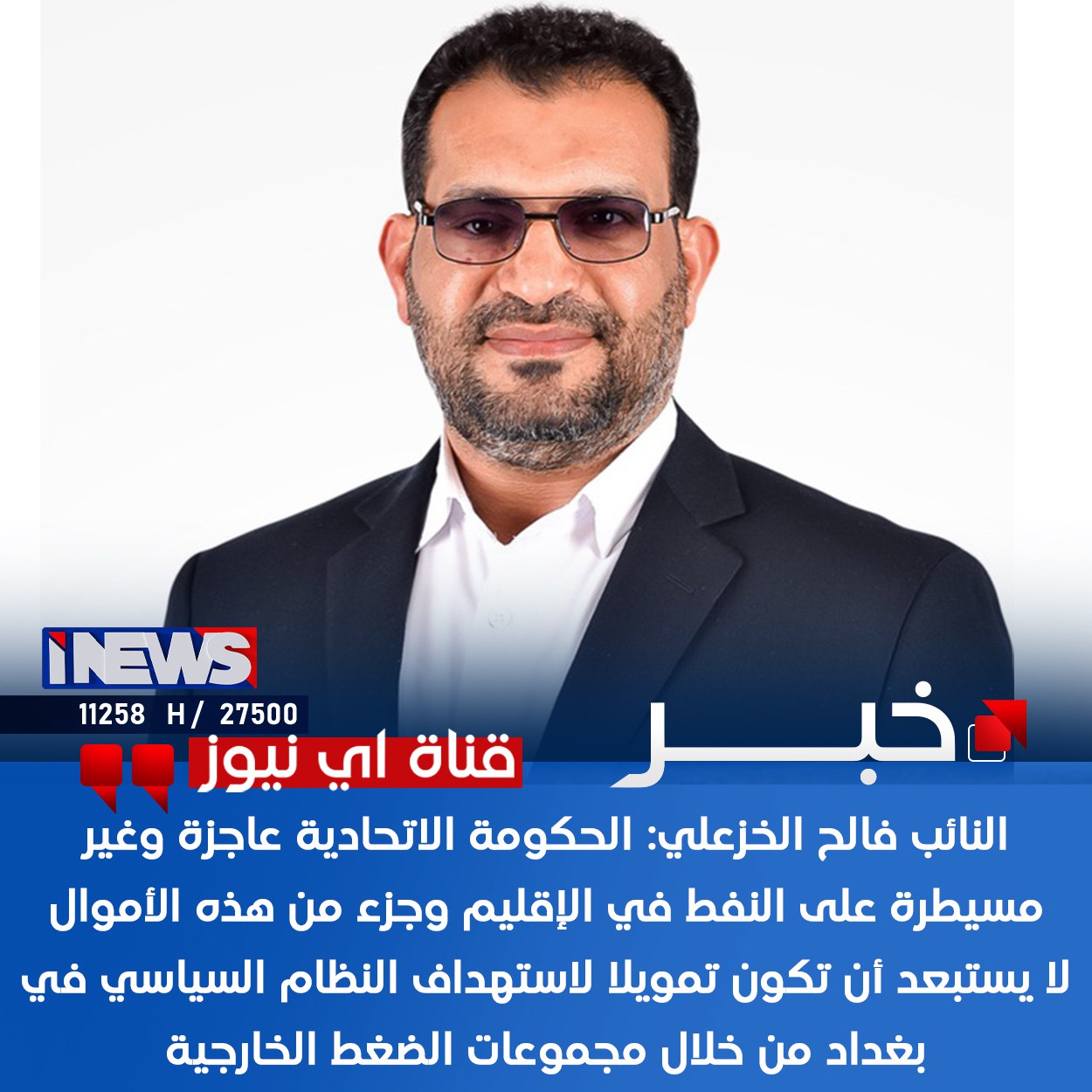 النائب فالح الخزعلي: الحكومة الاتحادية عاجزة وغير مسيطرة على النفط في الإقليم وجزء من هذه الأموال لا يستبعد أن تكون تمويلا لاستهداف النظام السياسي في بغداد من خلال مجموعات الضغط الخارجية