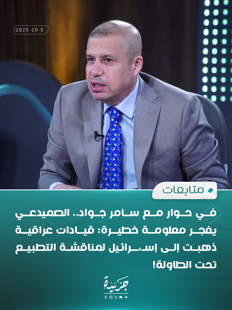 الصميدعي يفجر معلومة خطيرة: قيادات عراقية ذهبت إلى إسـ،ـرائيل لمناقشة التطبيع تحت الطاولة!.. 05/10/2025 الأخبار 57 زيارة فيينا / الأحد 05 . 10 . 2025 وكالة السيمر الاخبارية في حوار مع سامر جواد.. الصميدعي يفجر معلومة خطيرة: قيادات عراقية ذهبت إلى إسـ،ـرائيل لمناقشة التطبيع تحت الطاولة!..وفق حرية الرأي والنشر يتم نشر هذه المادة والجريدة غير مسؤولة عما ينشر فيها من مواد واخبار ومقالات 2025-10-05 alsaymar شاركها Facebook Twitter Google + LinkedIn