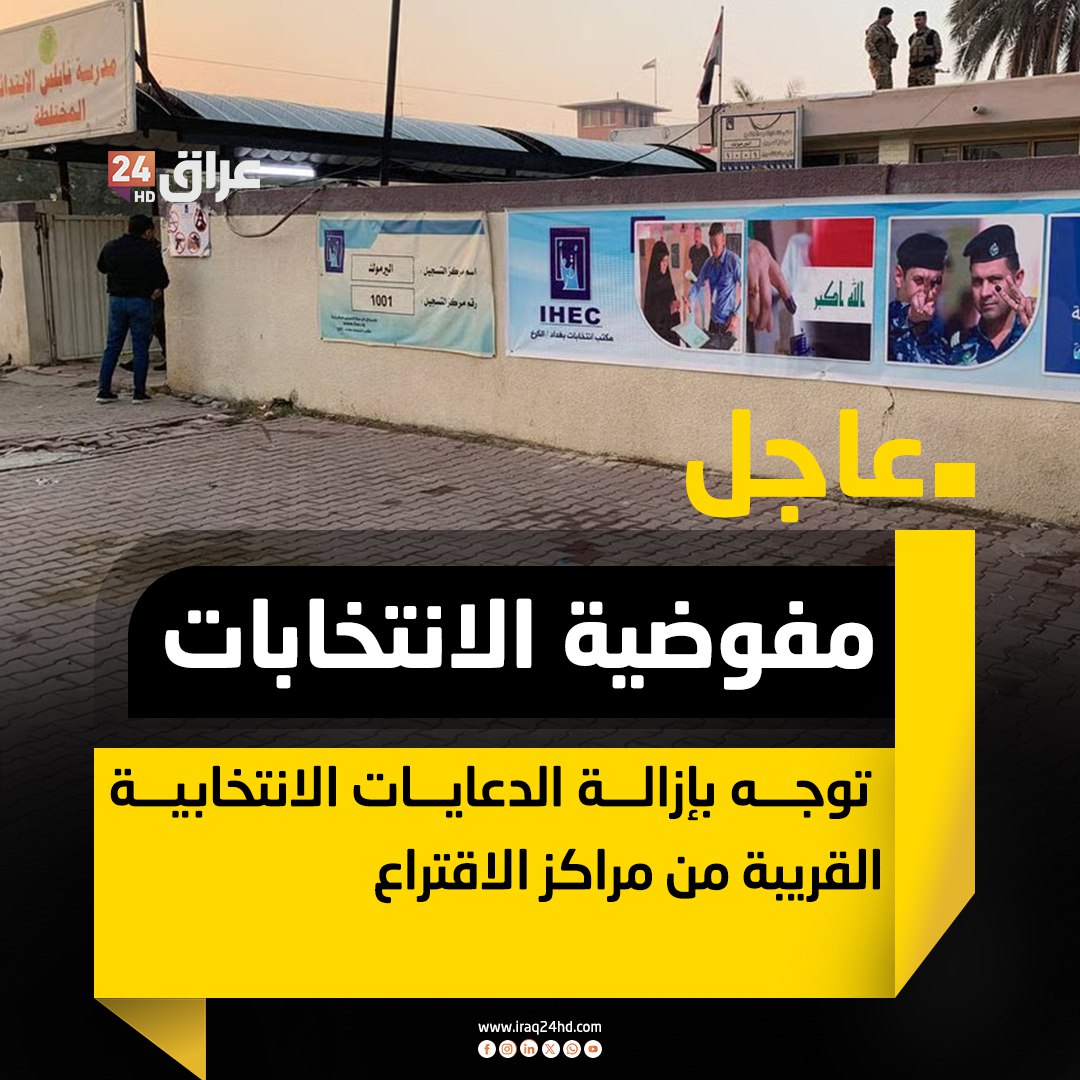 وجّهت المفوضية العليا المستقلة للانتخابات، اليوم الجمعة، بإزالة الدعاية الانتخابية القريبة من مراكز الاقتراع، وذلك في إطار استعداداتها لإنجاح الانتخابات البرلمانية العامة.