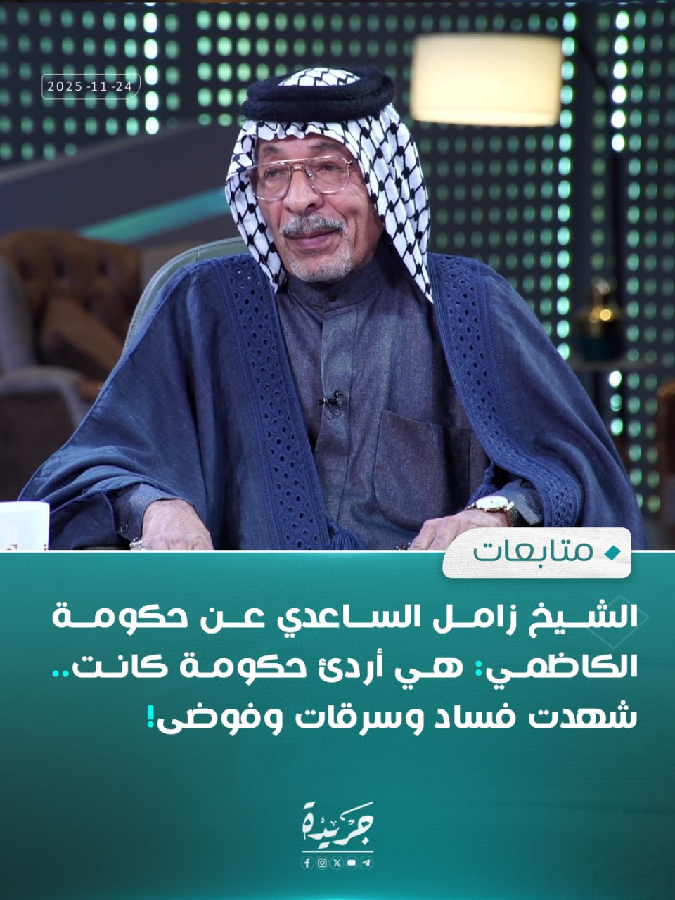 الشيخ زامل الساعدي عن حكومة الكاظمي: هي أردئ حكومة كانت 24/11/2025 الأخبار 15 زيارة فيينا /الأثنين 24 . 11 . 2025 وكالة السيمر الاخبارية الشيخ زامل الساعدي عن حكومة الكاظمي: هي أردئ حكومة كانت.. شهدت فساد وسرقات وفوضى! وفق حرية الرأي والنشر يتم نشر هذه المادة والجريدة غير مسؤولة عما ينشر فيها من مواد واخبار ومقالات 2025-11-24 alsaymar شاركها Facebook Twitter Google + LinkedIn