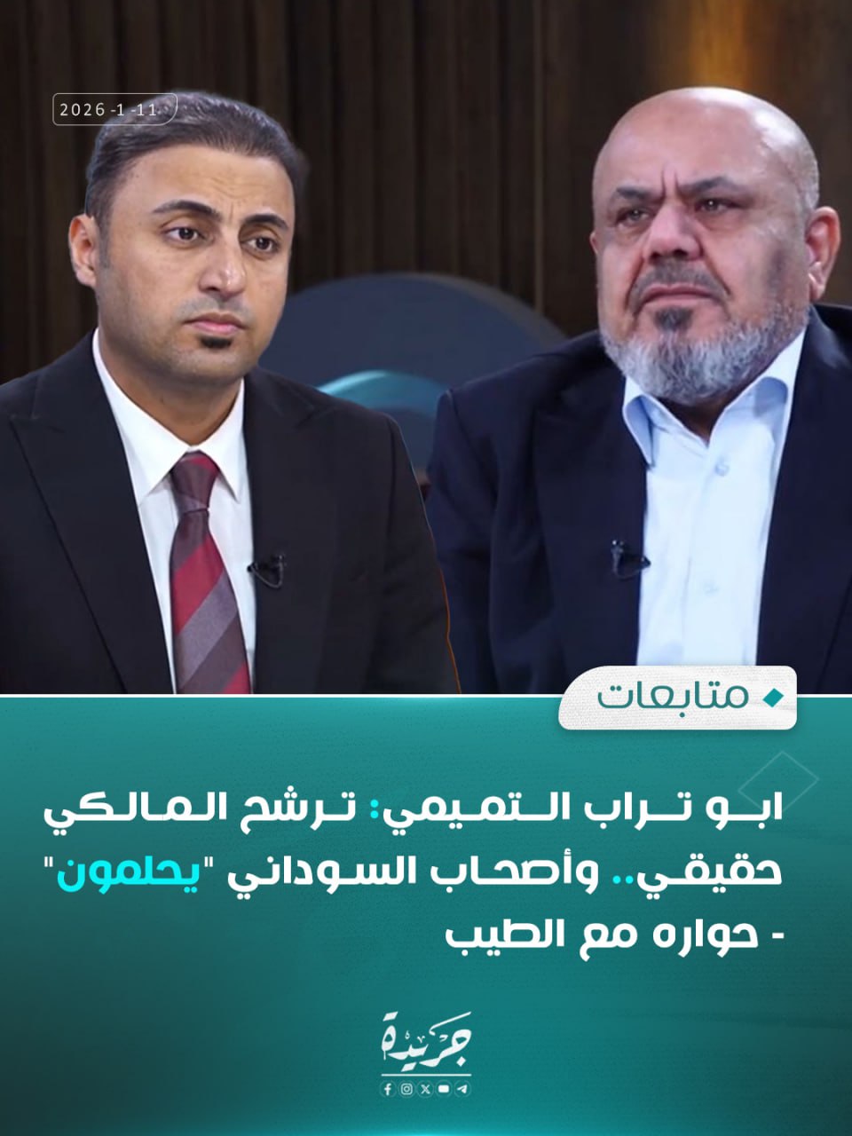 ابو تراب التميمي: ترشح المالكي حقيقي.. وأصحاب السوداني “يحلمون” – حواره مع الطيب 11/01/2026 مقالات 15 زيارة فيينا / الأحد 11 . 01 . 2026 وكالة السيمر الاخبارية في حواره مع الطيب ، قال : ابو تراب التميمي: ترشح المالكي حقيقي.. وأصحاب السوداني “يحلمون” المصدر / جريدة وفق حرية الرأي والنشر يتم نشر هذه المادة والجريدة غير مسؤولة عما ينشر فيها من مواد واخبار ومقالات 2026-01-11 alsaymar شاركها Facebook Twitter Google + LinkedIn
