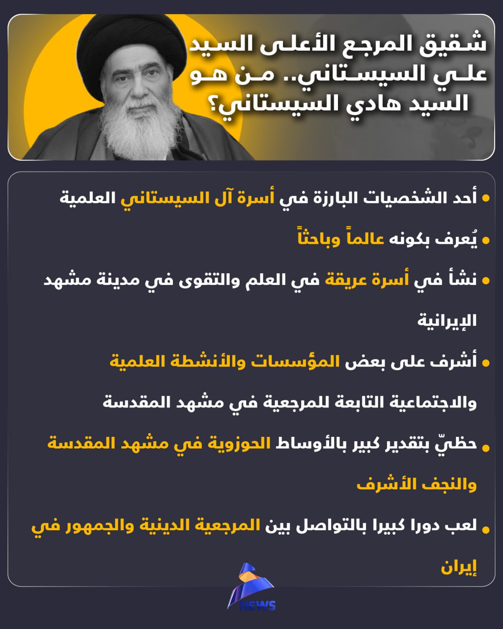 شقيق المرجع الأعلى السيد علي السيستاني .. من هو السيد هادي السيستاني؟