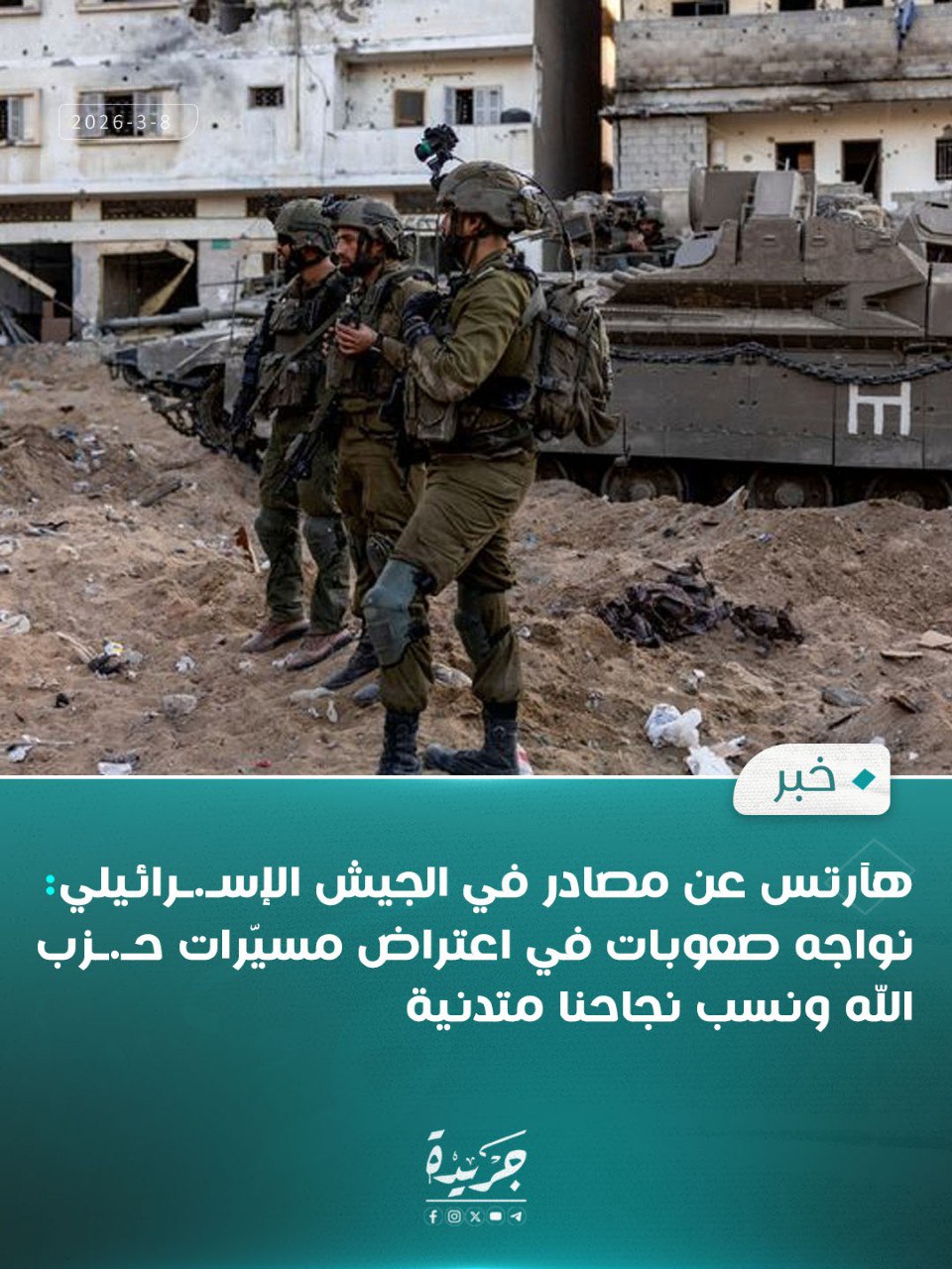 هآرتس عن مصادر في الجيش الإسـ.ـرائيلي: نواجه صعوبات في اعتراض مسيّرات حـ.ـزب الله ونسب نجاحنا متدنية.