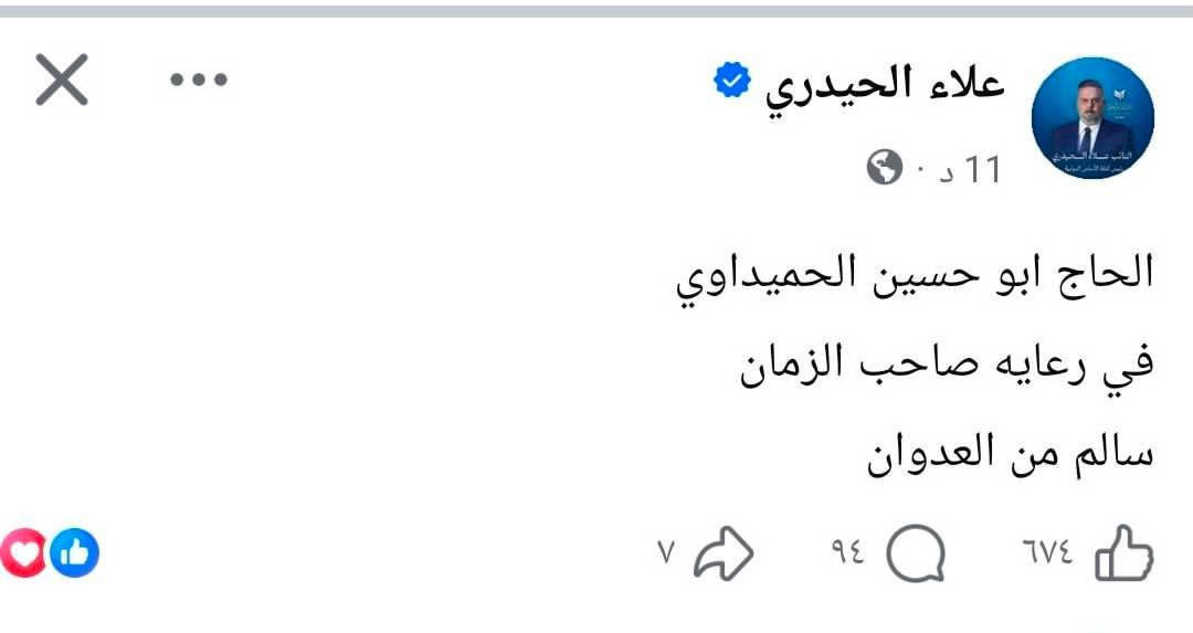 النائب علاء الحيدري ينفي صحة الانباء المتداولة عن استهداف الامين العام لكتائب حزب الله ابو حسين الحميداوي ساعتين ago مقالات 5 زيارة فيينا / السبت 14 . 03 . 2026 وكالة السيمر الاخبارية وفق حرية الرأي والنشر يتم نشر هذه المادة والجريدة غير مسؤولة عما ينشر فيها من مواد واخبار ومقالات 2026-03-14 alsaymar شاركها Facebook Twitter Google + LinkedIn